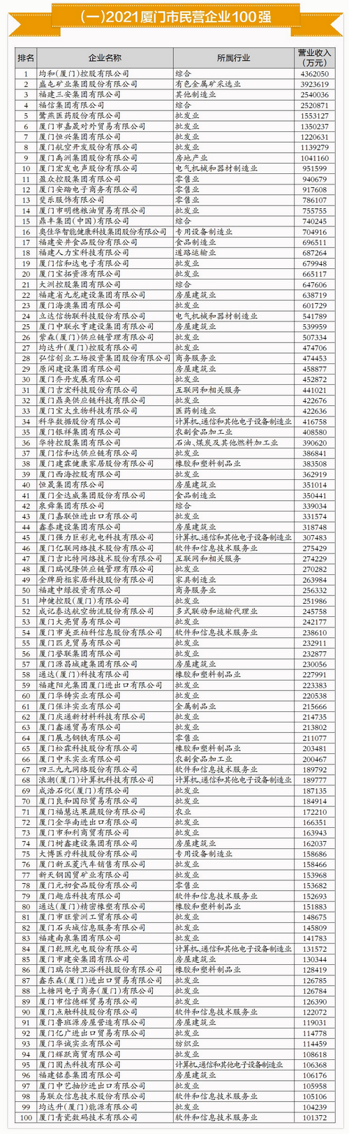 2021廈門市民營(yíng)企業(yè)100強(qiáng)