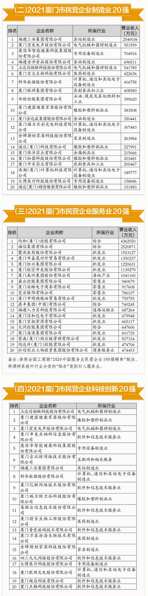 2021廈門市民營(yíng)企業(yè)制造業(yè)20強(qiáng)
